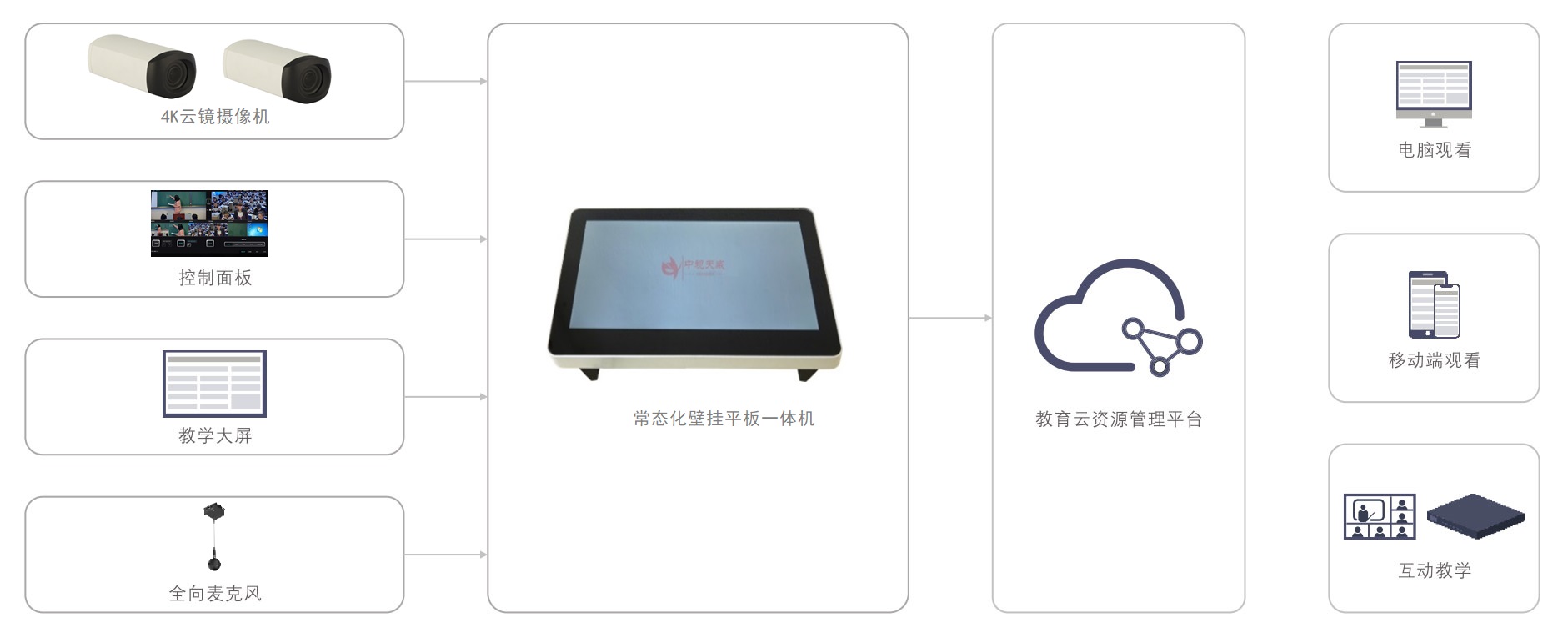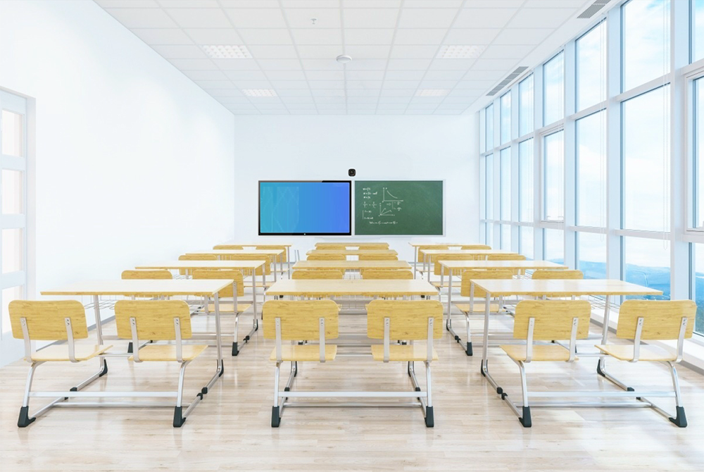 中视天威常态化录播教室采用极简录播设备配置,一台主机搭配两台自主研发的4K高清双目摄像机,同步实现课堂的资源录制和远程交互,让每间教室部署录播变成可能。