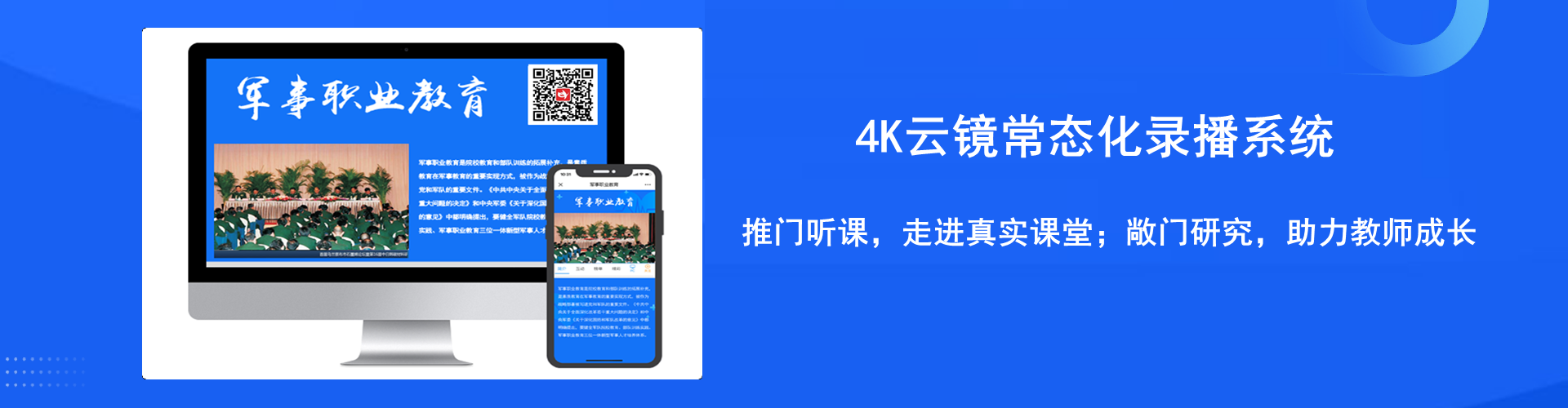 军事职业教育解决方案,适应各类不同场景的军事教育教学需求,为全体教员与官兵构建网络化、开放式、全覆盖的智慧教学环境和新型学习体系,助力三位一体新型军事人才培养。